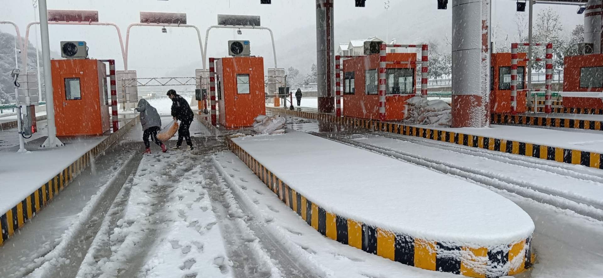 在G347湯溝收費站、S320沿江一級公路收費站建設現場,現場人員堅持“生命至上、安全第一”的原則,合力清除道路積雪,鋪灑融雪劑,引導過往車輛正常通行,努力為人民群眾創造安全暢通的公路交通環境。