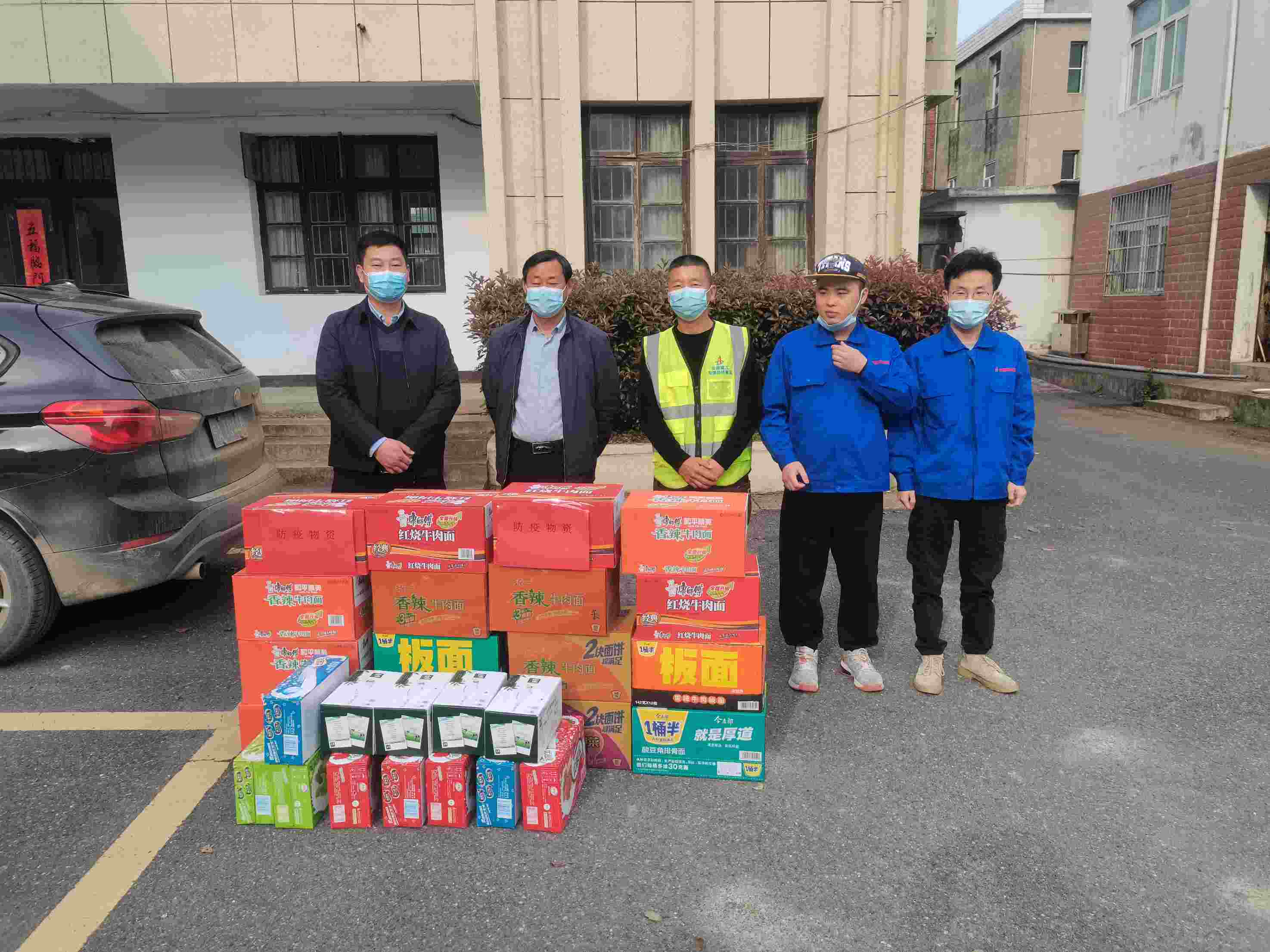 4月1日,G330銅陵段一級公路改建工程(一期錢鋪段)項目部慰問錢鋪鎮堅守在抗疫一線的工作人員,為無私奉獻、堅守崗位的工作人員送去方便面、牛奶、礦泉水等防疫物資。