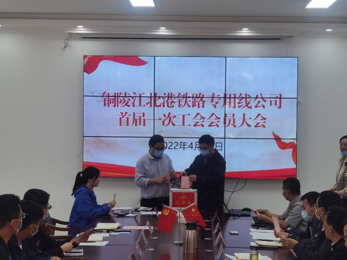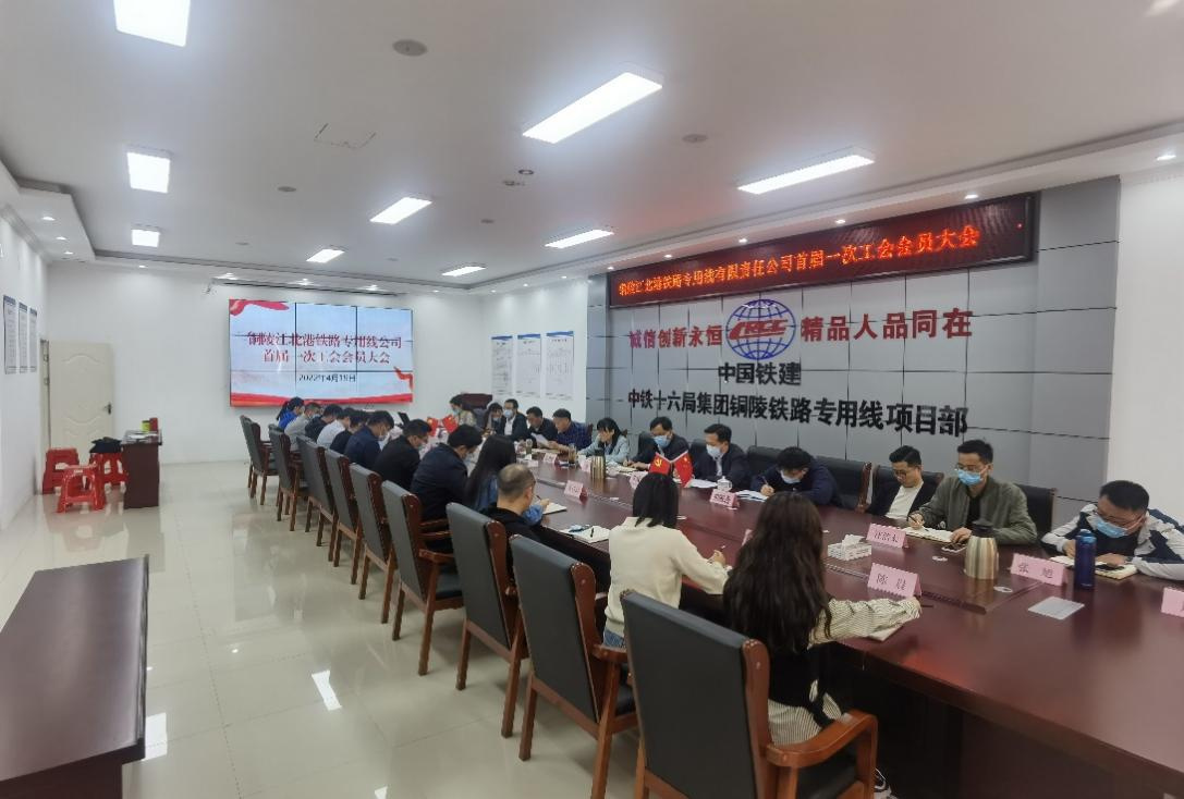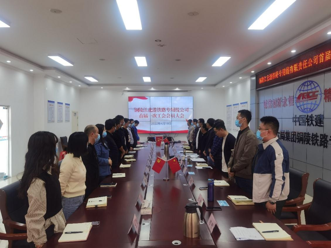 4月19日下午,銅陵江北港鐵路專用線有限責任公司首屆一次會員大會隆重召開,標志著銅陵江北港鐵路專用線有限責任公司工會正式成立。