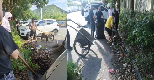 干部職工主動放棄休息,于9日早上6點半帶上工具趕到現場,頂著烈日奮戰,清理打掃路面300多米、先后拖運垃圾20余輛次,將沿路垃圾清理干凈,環境衛生煥然一新。