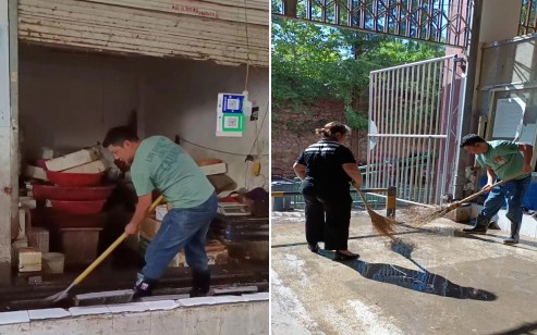 ↑↑↑清理市場水產區和光禽區的內部地面和排水溝