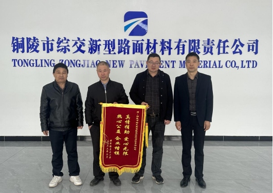 3月16日上午,收到愛心捐款的橫埠鎮(zhèn)左山小學(xué)校長在橫埠園區(qū)管委會負(fù)責(zé)人的陪同下,將一面寫著“真情捐助 愛心無限 熱心公益 企業(yè)楷模 ”的錦旗送到綜交新型路面材料公司,對我公司的愛心公益事業(yè)行為表示衷心感謝。
