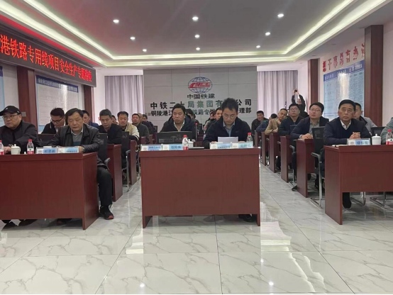 為凝聚全員安全生產意識,不斷提高安全生產管理水平,3月27日下午,江北港鐵路專用線公司在中鐵二十局項目經理部組織召開2023年度江北港鐵路專用線項目安全生產專題講座。活動由集團公司總工程師,江北港鐵路公司董事長、總經理張葉來主持,集團公司安全生產領導小組副主任趙進節到場指導,江北港鐵路專用線項目施工、監理單位安全生產相關管理人員共30余人到會聆聽講座。