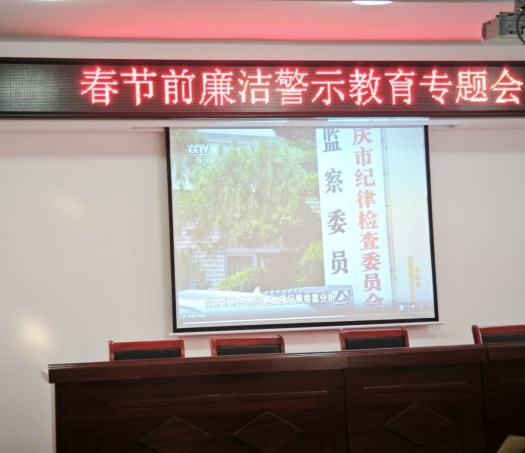 2025年春節將至,為全面落實從嚴治黨主體責任,深入貫徹落實中央八項規定精神,馳而不息糾“四風”樹新風,督促干部職工緊繃紀律之弦,確保節日期間風清氣正,營造文明、節儉、清廉、祥和的節日氛圍,1月20日下午,江北港鐵路專用線公司支部召開節前廉潔教育專題會。會議由專職紀檢委員王卓主持,支部書記張葉來出席并講話,江北港鐵路公司全體員工及綜交公司全體員工參加會議。