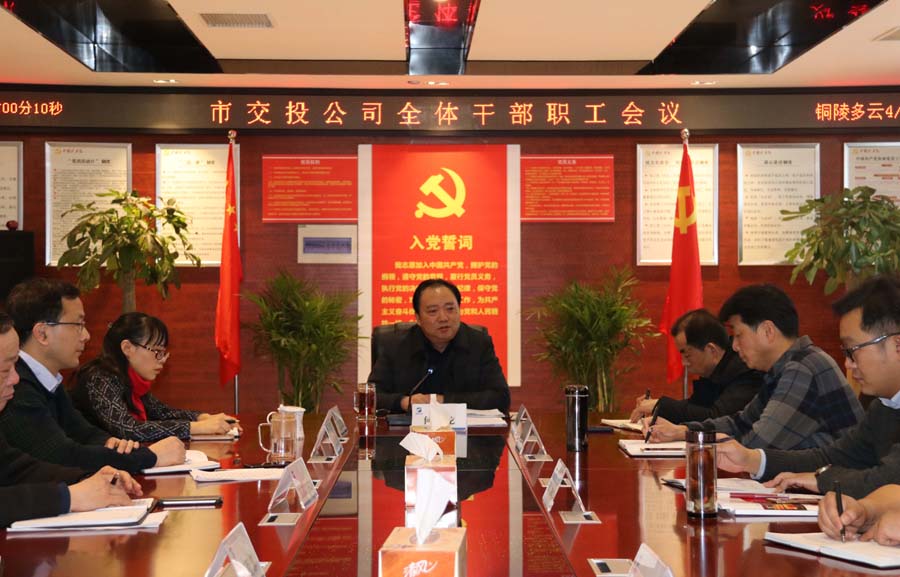 2018年2月22日下午,市交投公司召開全體干部職工會議,傳達學習貫徹22日上午市委、市政府召開的全市招商引資招才引智工作動員大會精神。會議指出,市委、市政府以深化供給側結構性改革和產(chǎn)業(yè)轉型升級為主線,堅持將招商引資、招才引智作為項目建設、經(jīng)濟發(fā)展的主抓手,年初第一天上班即召開“雙招雙引”動員大會,體現(xiàn)了對項目投資和建設工作的高度重視,公司上下要結合2018年公司轉型發(fā)展和各自崗位實際,認真貫徹全市動員大會精神,扎實做好市委、市政府布置給公司的招商引資招才引智工作任務。