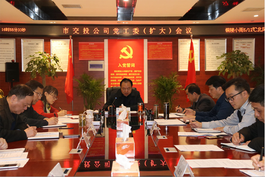 2018年2月24日下午,市交投公司召開黨工委(擴大)會議,傳達學習24日上午全市黨務工作會議內容和市委李猛書記講話精神,公司黨工委班子成員、全體中層以上干部參加會議。會議指出,市委高度重視黨務工作,作為組建成立不久的新交投公司,在轉型發展的開局起步之年,貫徹落實好全市黨務工作會議精神和李猛書記講話要求,對全年各項工作的推動和主要目標的實現具有十分重要的意義。