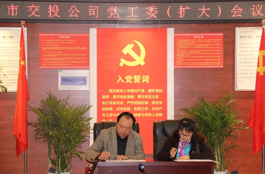 為認真落實黨風廉政建設責任制,進一步增強領導班子成員及部門負責人抓黨風廉政建設工作責任意識,認真履行“一崗雙責”職責。3月5日下午,市交投公司舉行了2018年度《黨風廉政建設責任書》簽字儀式。《黨風廉政建設責任書》明確了分管領導、部門負責人各自的責任事項,厘清了責任追究情形,強化了責任落實措施。