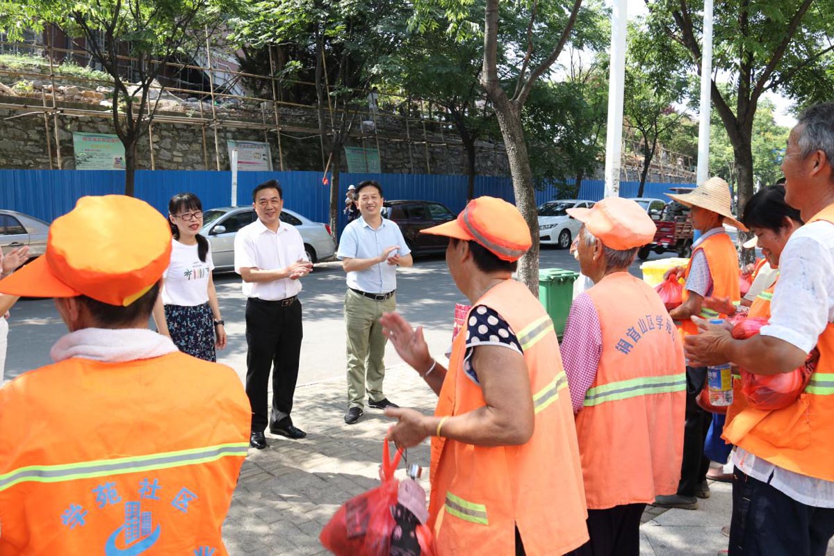 8月7日上午,集團公司黨工委委員、副總經理范美霞率隊前往銅官區學苑社區看望慰問環衛工人,開展“三包兩?!眲摻ǘ綄Чぷ?。