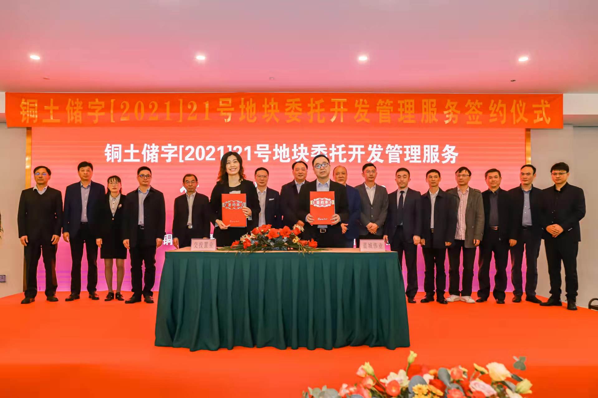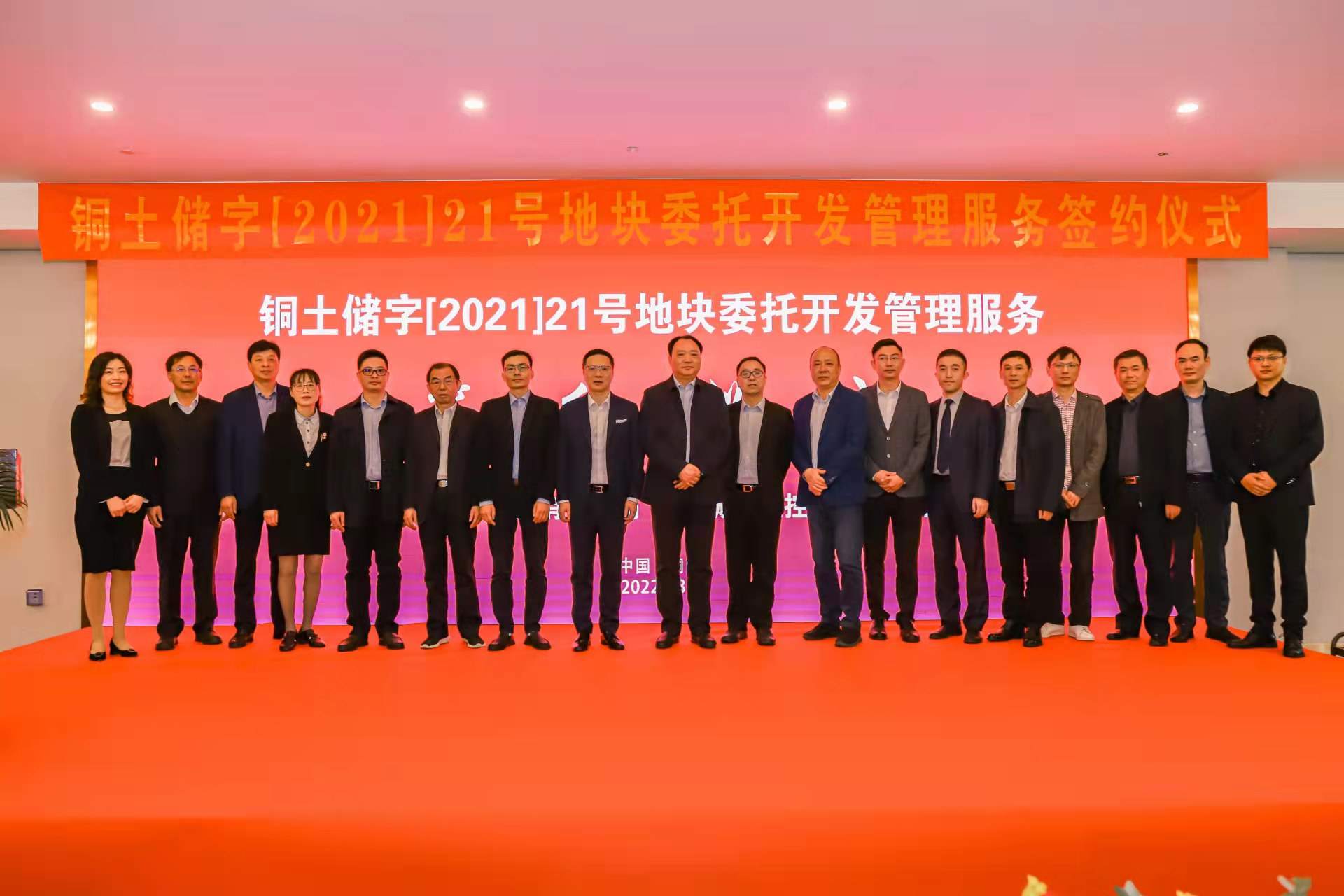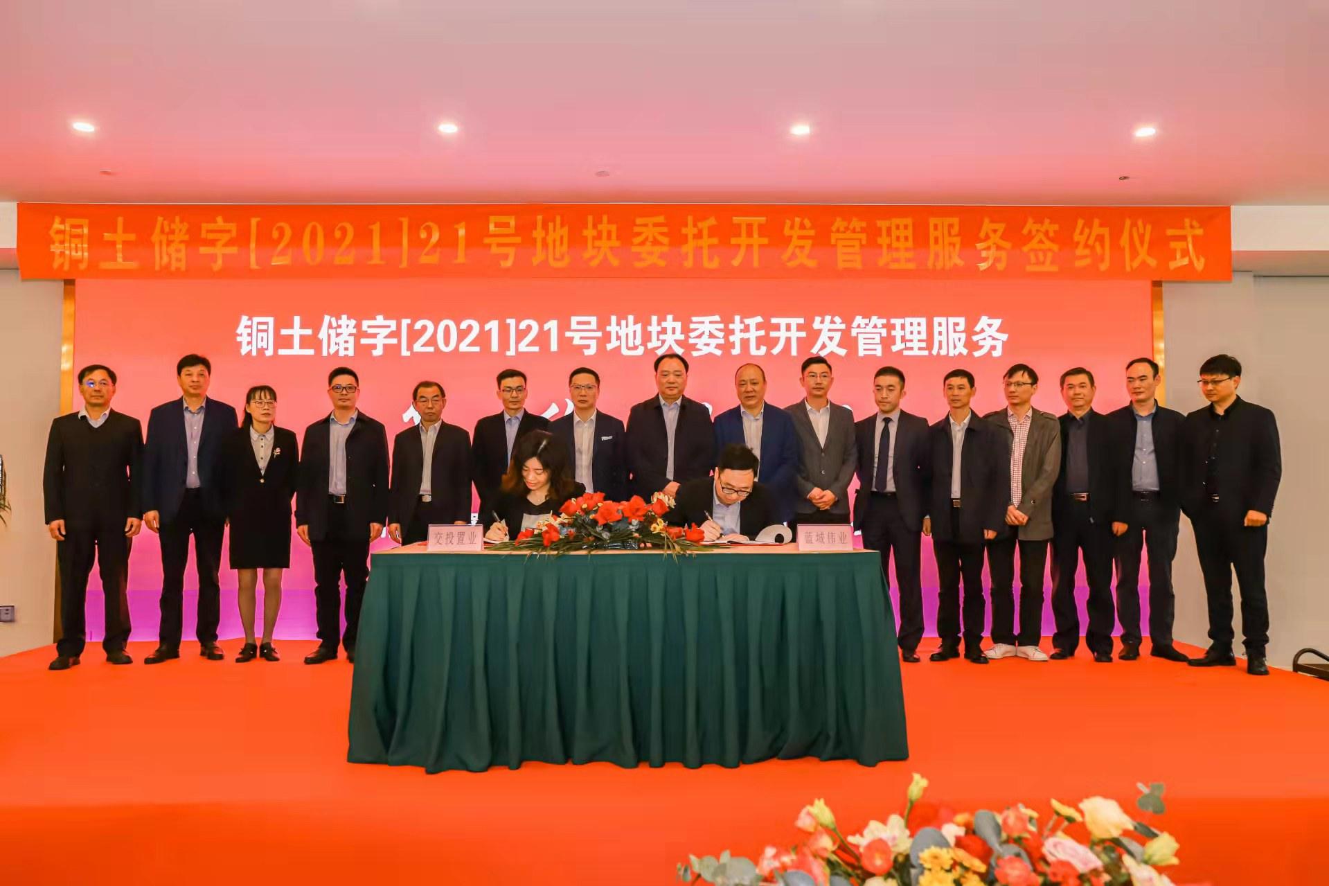 3月12日上午,銅陵交投置業與藍城偉業控股有限公司于銅雀臺酒店,正式完成銅土儲字【2021】21號地塊(綠源地塊)委托開發管理服務簽約。本次會議由銅官區政府副區長——劉宬主持,銅陵市招商服務中心、市住房和城鄉建設局、市自然資源和規劃局、招商服務中心、銅官區政府相關部門領導,以及銅陵交投、藍城集團領導共同出席了本次簽約儀式。