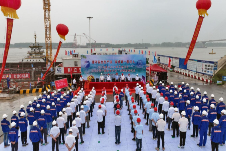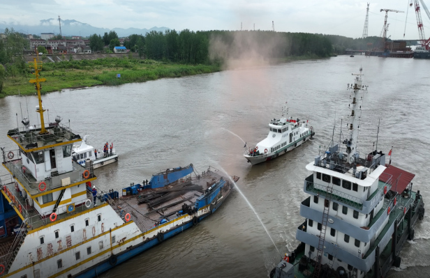 (六)6月21日上午,在G3銅陵長江公鐵大橋3#墩上游施工水域開展水上聯合應急演練。銅陵長江公鐵大橋投資有限公司、銅陵海事處、G3橋項目辦、項目部、監理等單位相關人員參與演練。