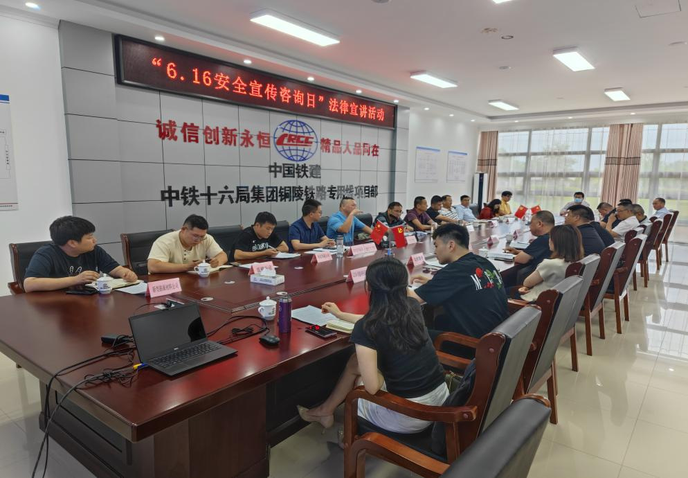 (三)6月14日,集團公司安全生產領導小組聯合江北港鐵路專用線公司開展“6.16安全宣傳咨詢日”法律宣講活動,邀請知名律師講解法律法規,各子公司、各項目負責同志參加活動。