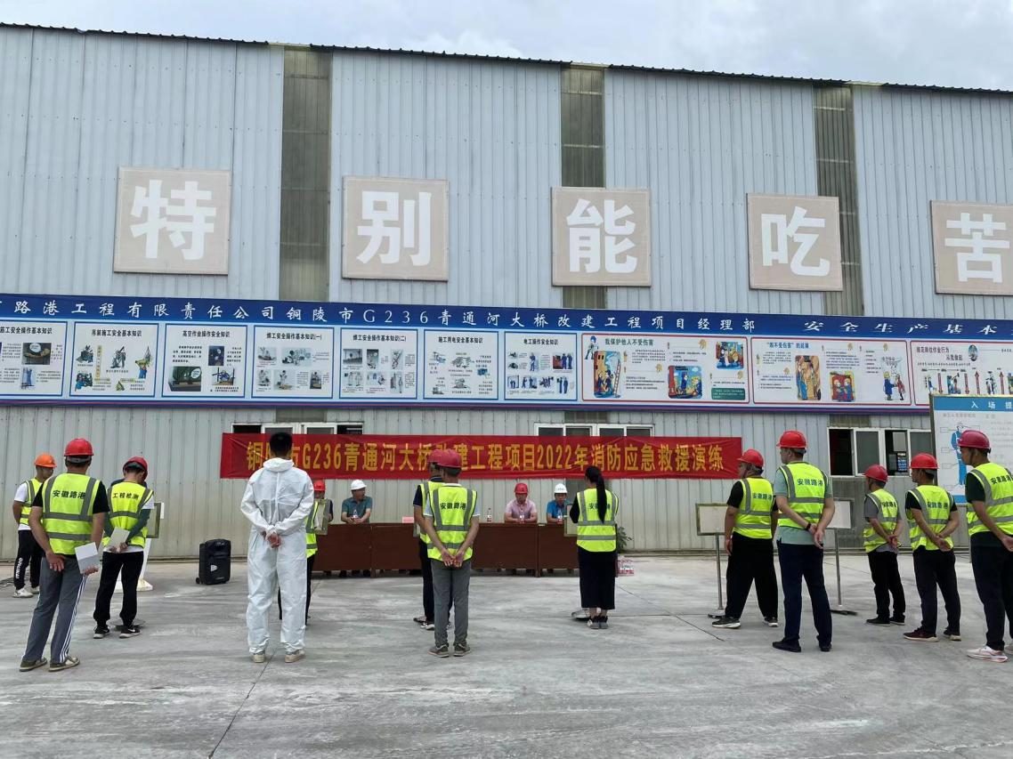 (九)6月30日,G236青通河大橋改建工程舉辦2022年消防安全知識培訓及演練活動,項目各參建單位參加活動。