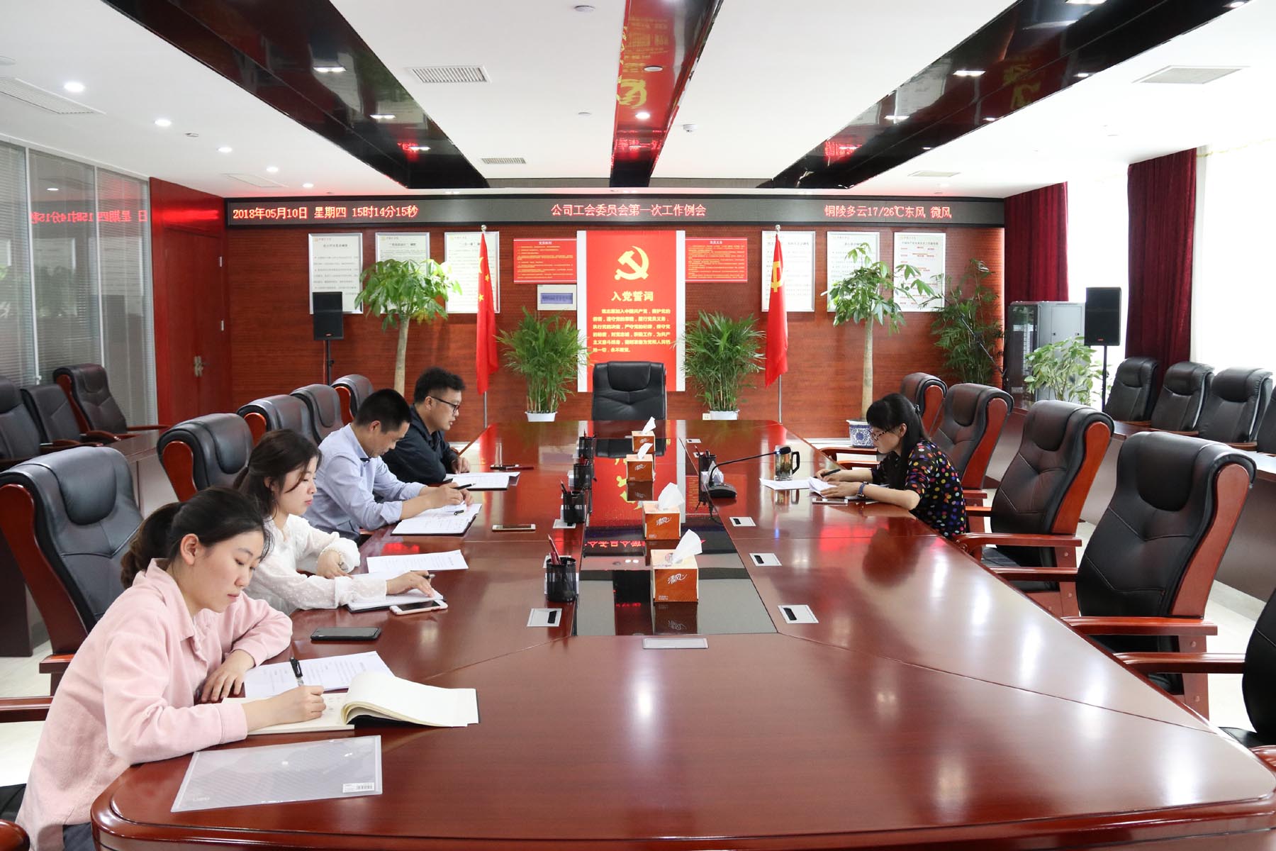 2018年5月10日下午,副總經理、工會主席范美霞在公司機關會議室主持召開工會委員會第一次工作例會,委員會全體成員參加會議。會上就工會委員會會議制度、公司“黨員日”主題教育暨職工春游活動方案等事項進行討論研究和明確。此次會議的召開,進一步加強了公司工會民主管理、規范了制度建設,在多為公司職工辦實事、做好事、解難事方面真正發揮職工與公司同心同德的橋梁作用。