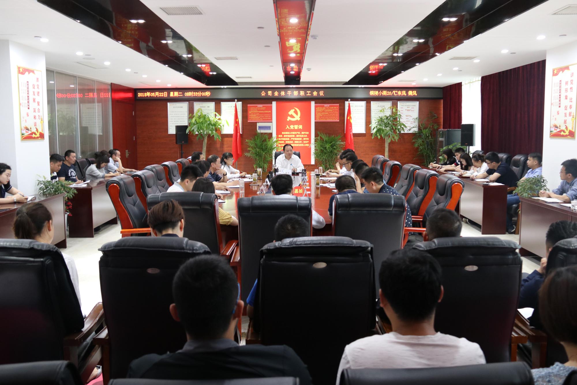 5月22日上午,公司召開全體干部職工會議,傳達學習5月18日市政府第一次廉政工作會議暨加快創優“四最”營商環境推進會精神,部署公司貫徹落實工作。公司黨工委書記、董事長何成龍主持會議并講話,公司黨工委領導班子及全體職工參加會議。