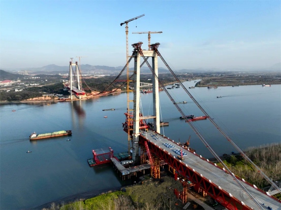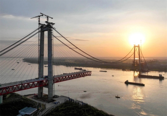 當(dāng)日,中鐵大橋局采用單懸臂法順利完成G3銅陵長江公鐵大橋北岸首節(jié)1200噸中跨鋼梁架設(shè),標(biāo)志著大橋全面進(jìn)入主跨鋼梁施工階段,預(yù)計今年6月下旬完成大橋合龍。