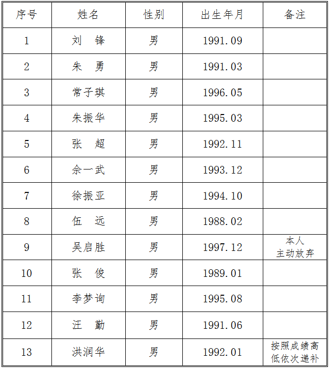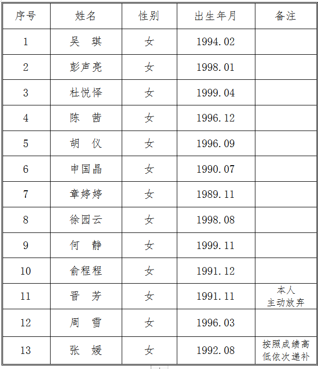現將交投集團司屬公司銅陵市江北公路管理有限責任公司收費員、監控員崗位招聘體檢入圍人員名單公示如下: