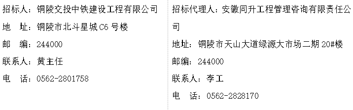 本招標公告同時在銅陵市綜合交通投資集團有限公司網、安徽同升工程管理咨詢有限責任公司網發布。