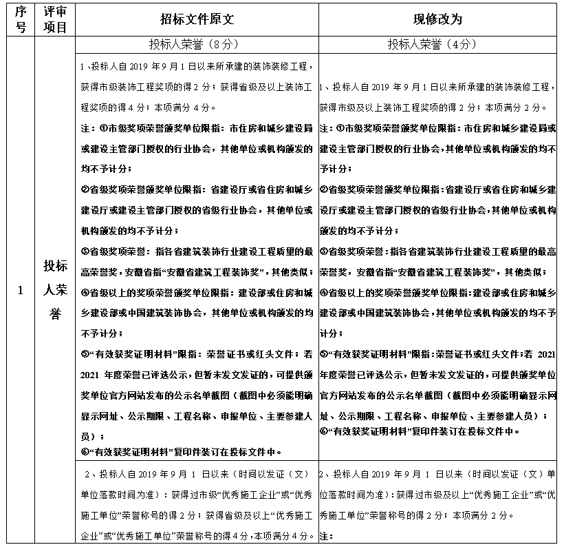 現(xiàn)對“銅陵市世界花園農(nóng)貿(mào)市場改造工程”(招標(biāo)編號:興業(yè)招采【2022】133)招標(biāo)文件有關(guān)內(nèi)容修改如下: