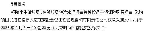 項目名稱:銅陵市生活垃圾、建筑垃圾轉(zhuǎn)運處理項目特種設(shè)備車輛保險購買項目