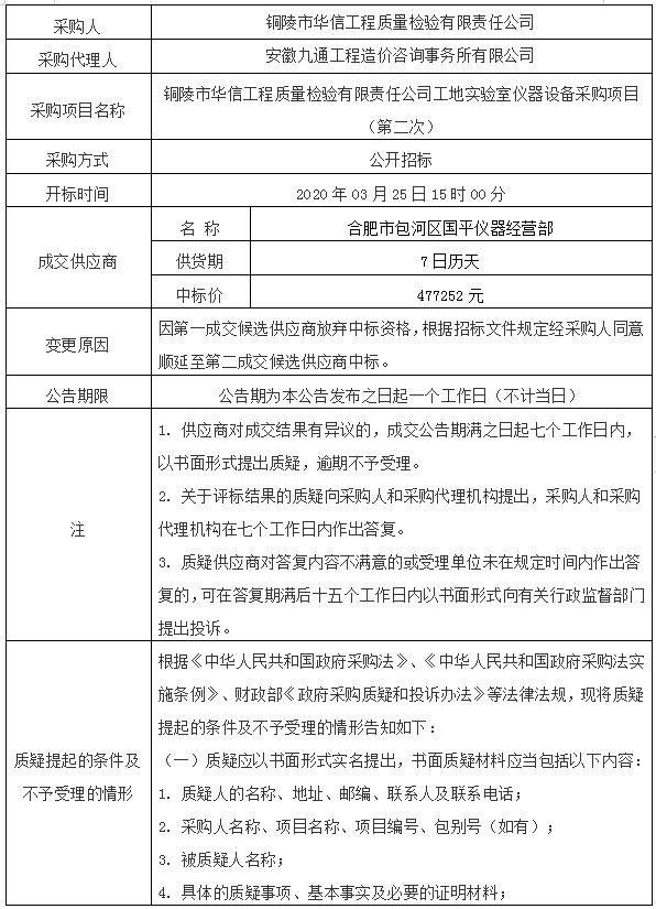 采購人:銅陵市華信工程質量檢驗有限責任公司