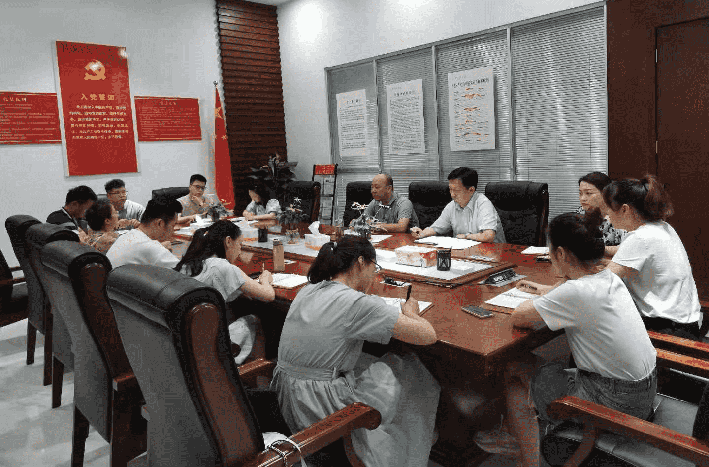 會議傳達學習了市委書記丁純在全市“兩優一先”表彰大會暨黨史學習教育專題黨課報告會上的講話,通報了各黨支部工作實錄等臺賬的檢查情況。會上,黨務工作人員就近期工作存在的困難、問題進行了深入的交流座談。隨后,黨群部負責人就下一階段黨建重點工作進行了安排部署。
