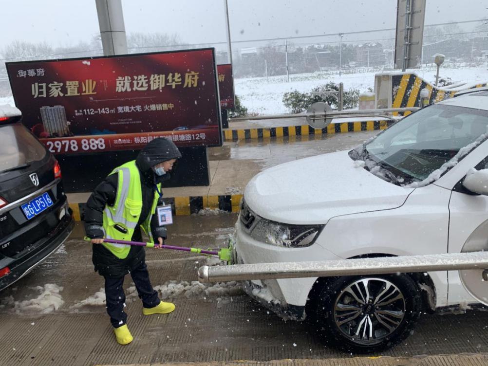 2月7日上午,隨著大雪的持續,路面積雪也已達到了一定的厚度,為了確保收費站道口的暢通和司乘人員的行車安全。集團公司第四黨支部組織黨員志愿者對道口進行了及時的清掃。同時,對過往車輛上的車牌積雪與大燈進行了擦拭,以實際保障車輛順利通行。