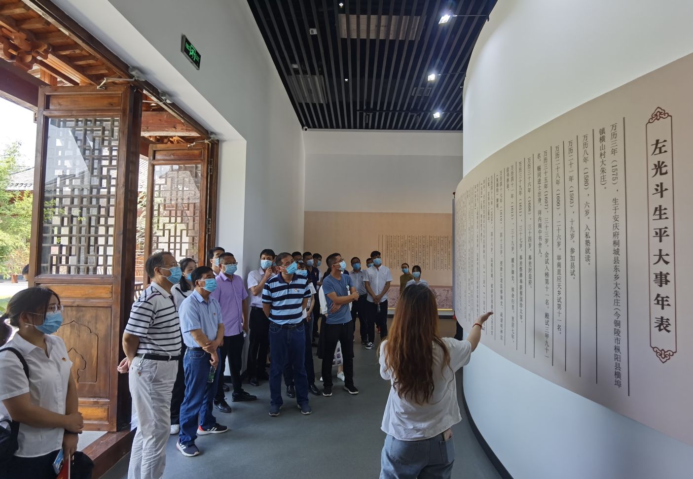 在工作人員的引導下,大家相繼參觀了門廳、乾坤正氣堂、主展館、電子館等展廳。現場觀摩館內展出的書畫、典籍、琴劍、印章等史料及文物。通過工作人員的現場解說,在場的黨員如身臨其境,通過這種沉浸式體驗切身感受到了左光斗以清廉立身、以恤民為本、以國家為懷的“鐵骨御史”形象。