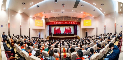 3月10日上午,2022年度銅陵市工會(huì)工作頒獎(jiǎng)大會(huì)在銅官區(qū)行政會(huì)議中心舉行,會(huì)議表彰2022年取得優(yōu)異成績的先進(jìn)集體和個(gè)人。市人大常委會(huì)副主任、市總工會(huì)主席陳昌生出席會(huì)議并講話。市總工會(huì)黨組書記、副主席何民主主持會(huì)議。市紀(jì)委監(jiān)委駐市人大機(jī)關(guān)紀(jì)檢監(jiān)察組組長張克華,市總工會(huì)黨組成員、副主席朱永宏、吳蒲江、伍永勝,市總工會(huì)兼職副主席王利勝、方凱,各縣、區(qū)總工會(huì)主席、黨組書記、副主席參加會(huì)議。集團(tuán)公司工會(huì)作為獲獎(jiǎng)先進(jìn)集體參加會(huì)議。