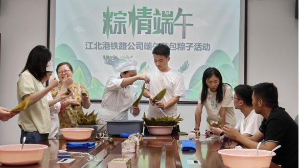 端午臨仲夏,千載意蘊(yùn)長(zhǎng)。在端午佳節(jié)來臨之際,為大力弘揚(yáng)中華民族優(yōu)秀傳統(tǒng)文化,進(jìn)一步豐富公司職工精神文化生活,營造和諧溫馨的工作氛圍。6月20日下午,江北港鐵路專用線公司工會(huì)組織開展了以“粽情端午 粽享歡樂”為主題的職工包粽子活動(dòng)。