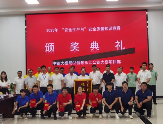 6月30日,G3銅陵長江公鐵大橋開展“安全生產月”安全質量知識競賽活動。銅陵長江公鐵大橋投資有限公司執行董事、總經理湯世才,副總經理李春雨出席活動,并與全過程項目管理辦公室負責人潘波,鐵科院監理總監王勛文,合肥工大監理副總監王祥,項目經理劉幸福,總工程師姚森,安全總監周啟輝組成裁判組。