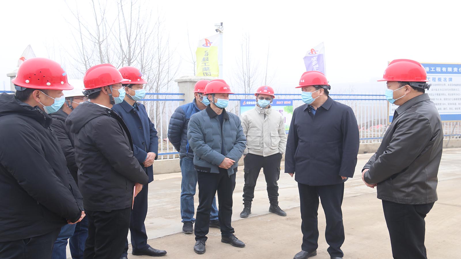黃學龍一行先后前往江北港鐵路專用線項目、G236青通河大橋改建工程、G3銅陵長江公鐵大橋先行工程項目現場,詳細了解項目工程進度和春節期間的各項工作安排,對建設者們為重大項目如期推進作出的努力和貢獻表示感謝。